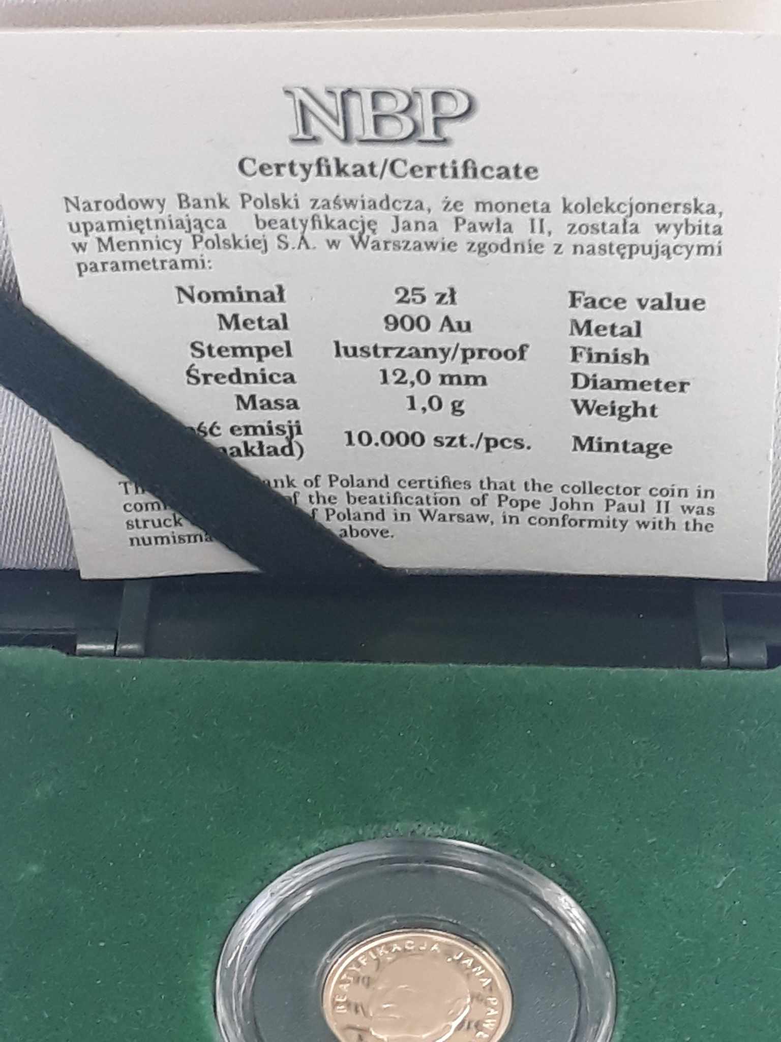 25 zł 2011 r. Beatyfikacja JP2 – szt 1 gr Au 900