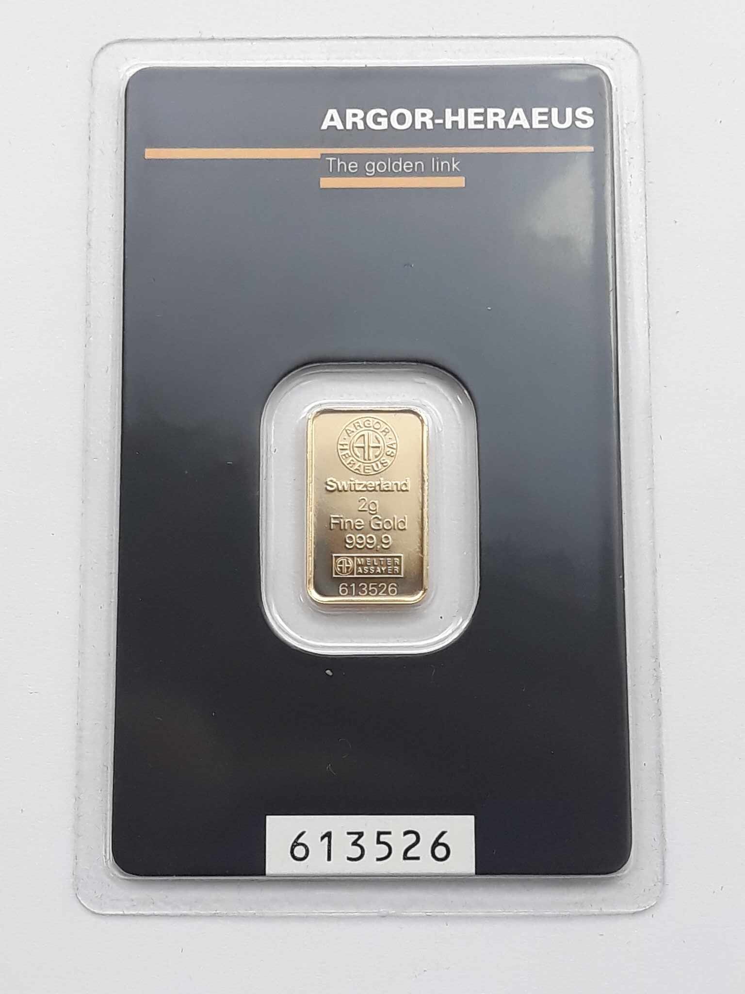 Sztabka złota 2 gr Argor – Heraeus Szwajcaria 2 gr Au999